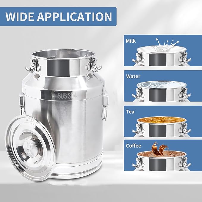 - 【304 HIGH QUALITY STAINLESS STEEL】Ensure you have a durable and high-strength milk can.It not rust easily.And when compared to aluminium,304 stainless steel can offer a number of benefits, including keep milk freshness for a longer time.