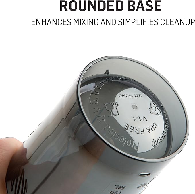 - Wide mouths make it easy to add mix scoops and liquids, and embossed markings measure both ounces and milliliters; rounded bases for thorough mixing. (BlenderBottle)