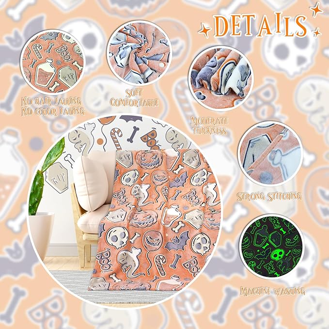 - HALLOWEEN DECORATIONS FOR HOME-our cute halloween blankets are not only soft halloween blankets but also halloween decor cute.such as skeleton halloween decor,halloween party decorations,halloween decorations outdoor,halloween room decor,halloween car accessories,cute spooky home decor,halloween pumpkin decorations,halloween living room decor,skull decor,spooky decor,hocus pocus decor,horror decor,ghost decor.amazing blanket to get into spooky season use as a spooky blanket to snuggle up with.
