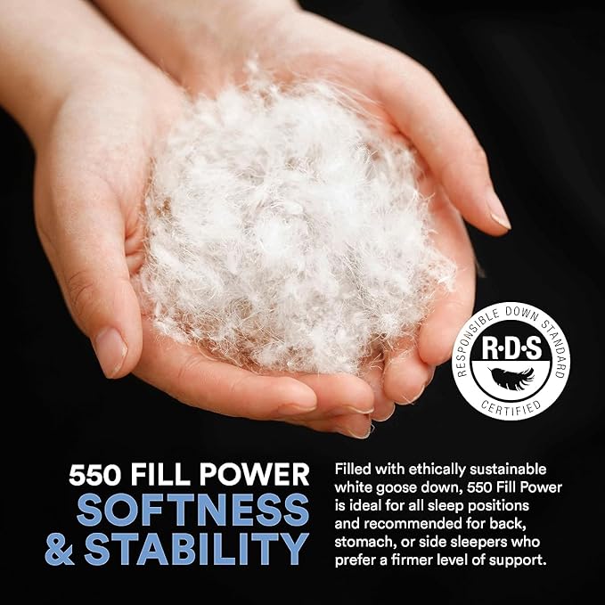 - Goose Down-Filled Luxury: Our down feather pillow are made with premium-quality down and no feathers. Our queen sized pillow measures 20 x 30 inches and is filled with 25 ounces of premium white down fill.