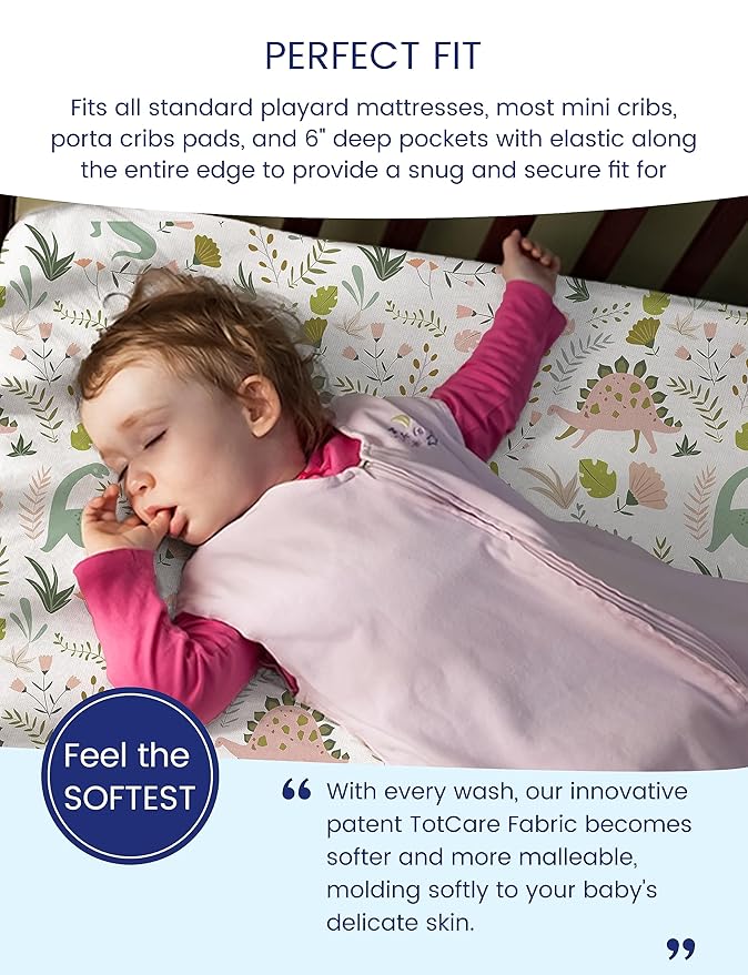- CLEAN SHEETS. RESTFUL NIGHT: Starring TotCare Fabric, the soft, sustainable and gentle material that makes this mini crib sheets set to ensure a good night rest. Your baby will sleep like a pro, you will sleep like a baby.