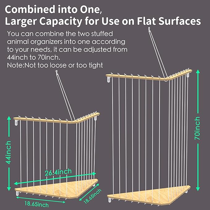 - Premium Wood Construction - Crafted from high-quality wood for superior durability and strength. Rest assured knowing this stuffed animal storage organizer can handle the weight of all those cuddly toys.