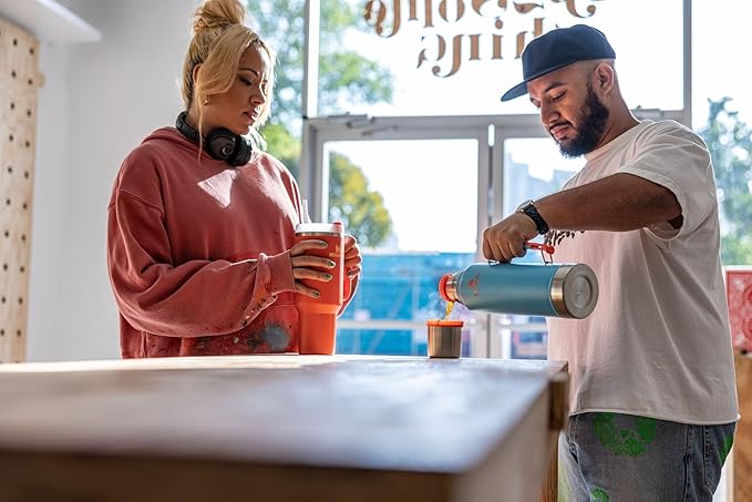- TOUGH AND DURABLE –The industrial-grade 18/8 stainless steel construction on this insulated thermos means it can work just as hard as you do without impacting its performance. This is an ideal bottle to throw into your truck, work bag, or travel with it
