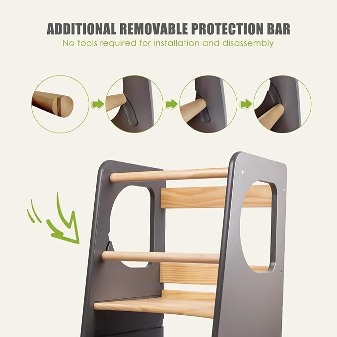 - MUTI-FUNCTIONS: Toddler kitchen stool can elevate your baby to counter height, teach them cooking skills to get a little helper shortly. Make your kitchen full of fun! Also, you could put it in the washing room so kids can brush their teeth by themselves.