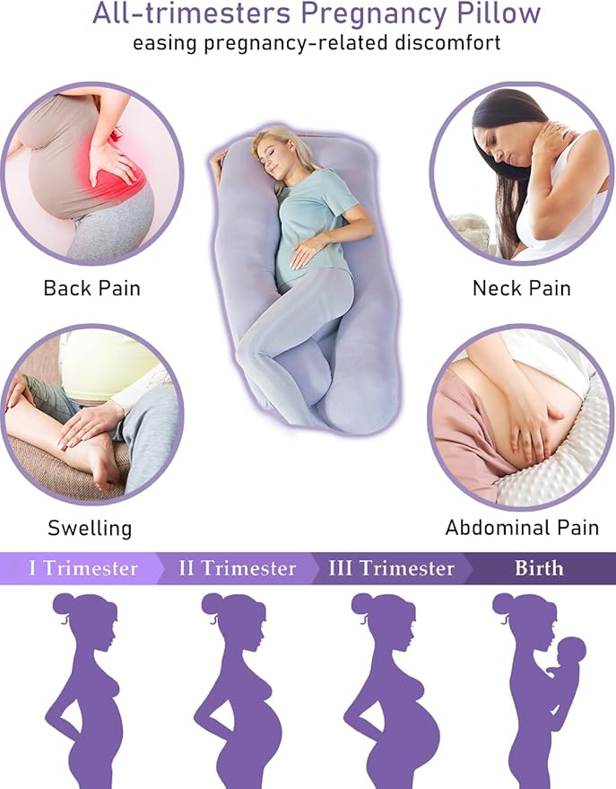 - Tailored for Pregnancy - Our generously sized pregnancy pillow caters to your growing bump throughout all trimesters. The removable cover simplifies upkeep, and the inner zipper enables you to customize the filling to your liking.
