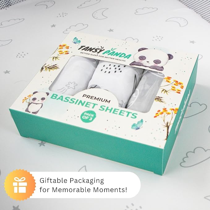 Bassinet Sheets for Maxi-Cosi Iora, Papablic 2 in 1 Bonni, Cowiewie Bassinet Bedside Sleeper, 3 Pack, 33x20 Inch, Ultra Soft, Breathable Snug Fit, Unisex Boys Girls, Gray White (Moon, Stars, Clouds)