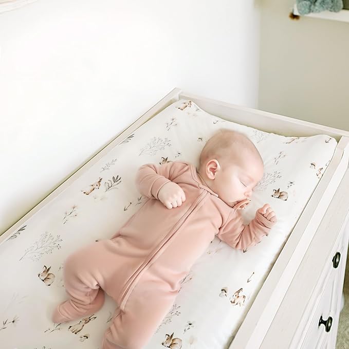 - Designed by Moms for Moms - We know how hard it can be to find a changing pad cover that is easy to use and beautifully designed.We started this company because we’re customers just like you. So we provide a classic, Rabbit pattern and that will put the finishing touches to any bedding.