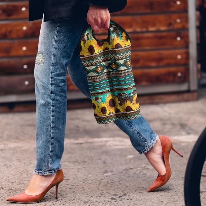 doginthehole Sunflower Insulated Wine Bag 2 Bottles Portable Wine Carrier Tote Aztec Tribal Geometry Print Wine Cooler Bag Champagne Bottle Holder Protective Sleeve