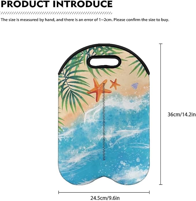 doginthehole 2 Bottle Wine Carrier Beach Theme Travel Insulated Wine Carrying Case Cooler Tote Bag Wine Bottle Holder Neoprene Champagne Bottle Protective Bag Wine Accessories Gift for Women Men