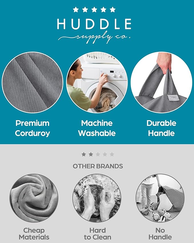 - Invest in the best: Made from thick 100% corduroy for superior durability and shape retention; Huddle's stuffed animal storage bean bag offers sturdy seating that lasts