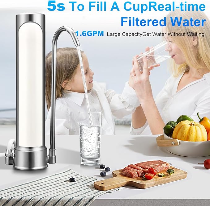 - 【Effective & Economical Choice】The countertop water filter can provide 6000 gallons of fresh water.Affordable choice. Excellent quality.You can save money and enjoy clean refreshing water.