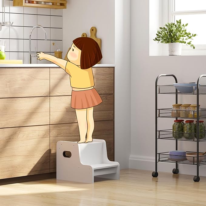 HOOBRO Step Stool for Kids, Two Step Toddler's Stool, Kids Potty Training Stool with Handles, Non-Slip Pads for Safety, Easy to Move, for Sink, Bathroom, Bedroom, White WT01JD01G1