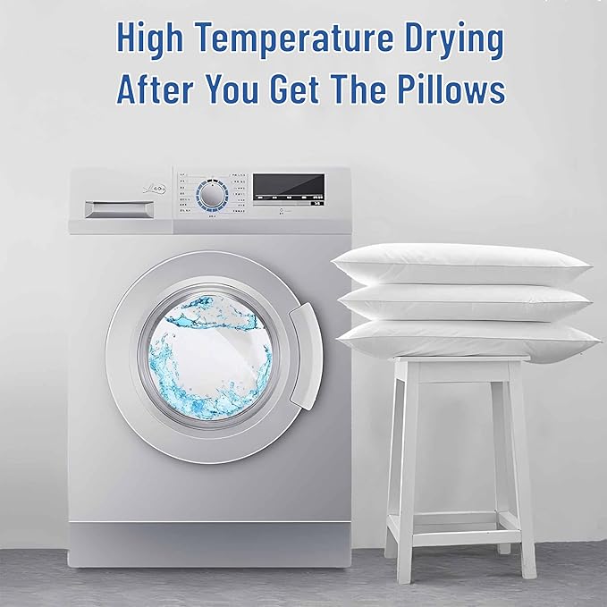 - WHAT YOU GET - 4 pack of king size comfy bed pillows. Gentle washing with cold water. High temperature drying.