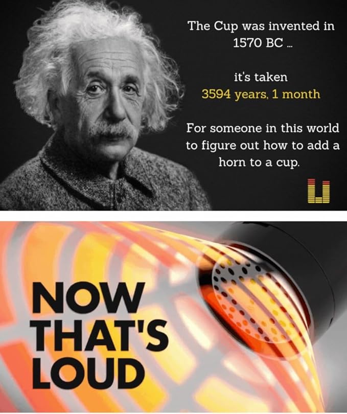 - PATENT PENDING DESIGN: The LoudCup — unofficially the world’s loudest cup! This reusable tumbler has an integrated horn inside. Think next-level stealth vuvuzela. The harder you blow, the louder the sound—no spills, just thrills!