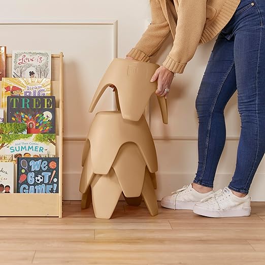 - Versatile Stools: Brighten up any space with a 4-pack of colorful plastic stools; seats are great for reading a story, playing games, or coloring in a preschool or early education space