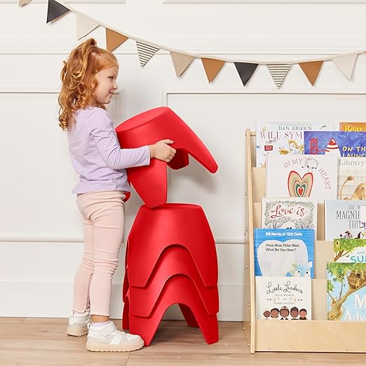 - Versatile Stools: Brighten up any space with a 4-pack of colorful plastic stools; seats are great for reading a story, playing games, or coloring in a preschool or early education space