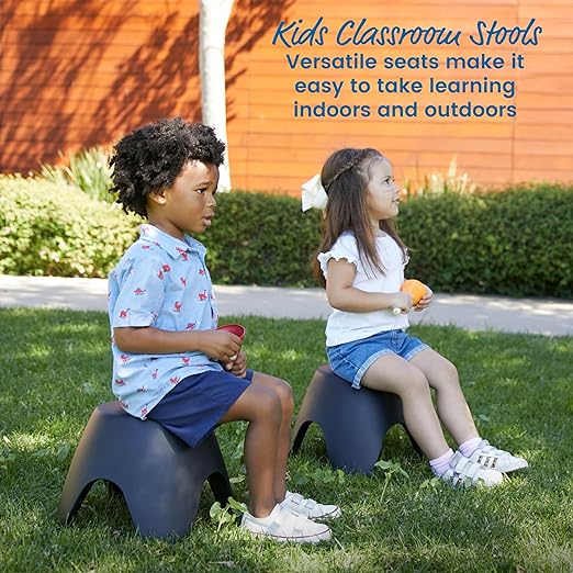 - Versatile Stools: Brighten up any space with a 4-pack of colorful plastic stools; seats are great for reading a story, playing games, or coloring in a preschool or early education space