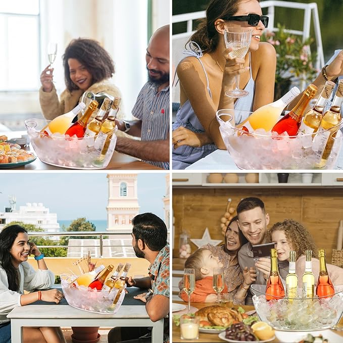 - Wide Range of Uses: The acrylic ice bucket for party is suitable for outdoor or indoor activities such as family, bar, coffee shop, hotel, restaurant, party, patio party, buffet, Chrismas celebration etc., bringing more joy to your activities and you can enjoy it. The wine ice bucket can not only hold drink, but also be used as a storage bucket for fruit or candy