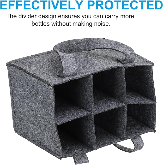 - Instruction: Put the wine bottle vertically into the wine storage bag and pick it up with the handle. The divider design ensures you can carry more bottles without making noise. The soft and comfortable handles provide a secure and portable grip.