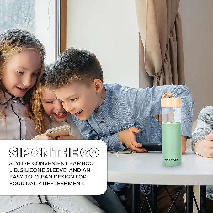 - STAY HYDRATED ON THE GO : Quench your thirst anytime, anywhere with our HYDRATE Glass Water Bottle - a convenient and reliable 25oz gym companion designed for your active lifestyle.