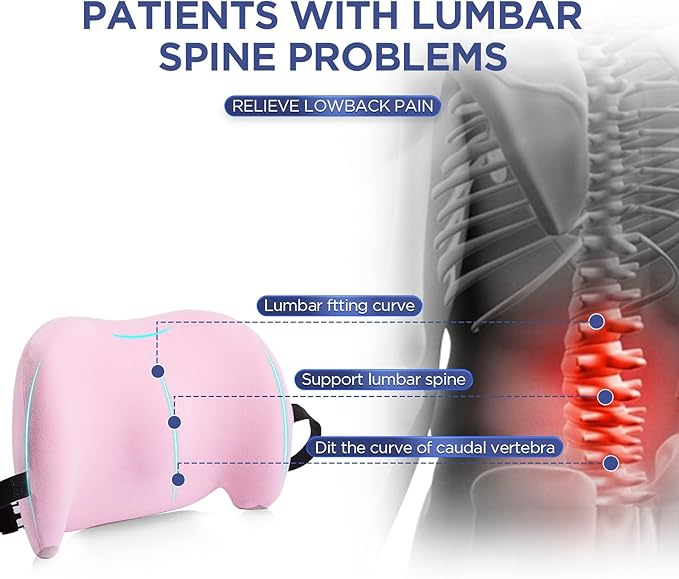 Lumbar Support Pillow for Office Chair, Car Lumbar Pillow Lower Back Pain Relief, Memory Foam Back Cushion with Adjustable Straps, Ergonomic Chair Back Pillow for Gaming Chair, Car, Bed (PINK)