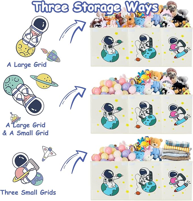 Toy Storage Box with Lid,Extra Large Toy Box Chest Bin Organizer Basket with Dividers for Toddlers,Kids,Boys,Girls,Living Room Area (Beige Astronaut)