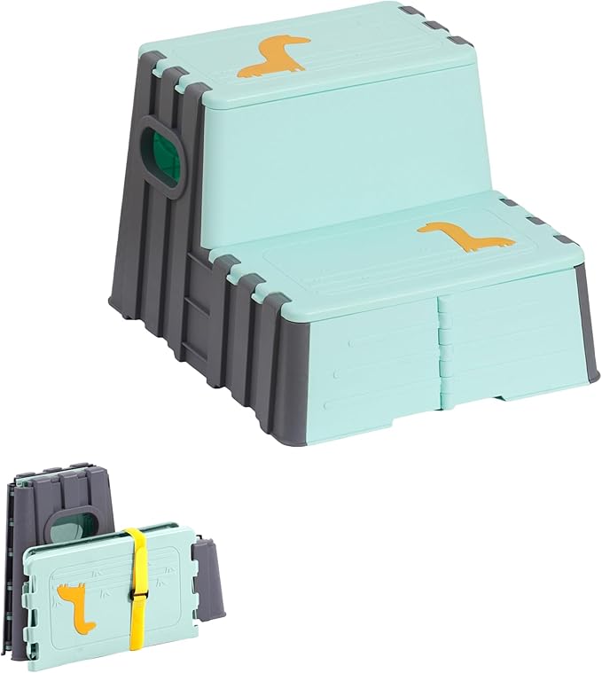 - 【Foldable Design】This foldable toddler step stool is light and easy to carry with folded size:14.4*3.0*9.6in, does not take up space when you take the step stool out for gardening, camping, boating or under the sofa or bed lying down or vertically between a wall and appliance or furniture when not in use.