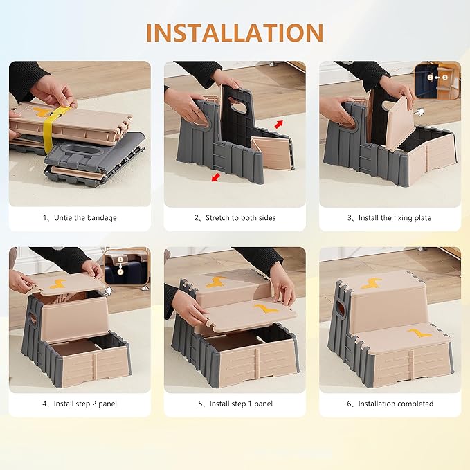 - 【Step Stool for Kids & Adult】The first step of the step tool is 4.5 inches high and the second step is 9.6 inches high, which is in line with the kid's body and makes it easier for your kid to get up and down. With the high quality material and scientific structural design, The stepping stool has a maximum weight capacity of 200 lbs, making it suitable for both children and adults.