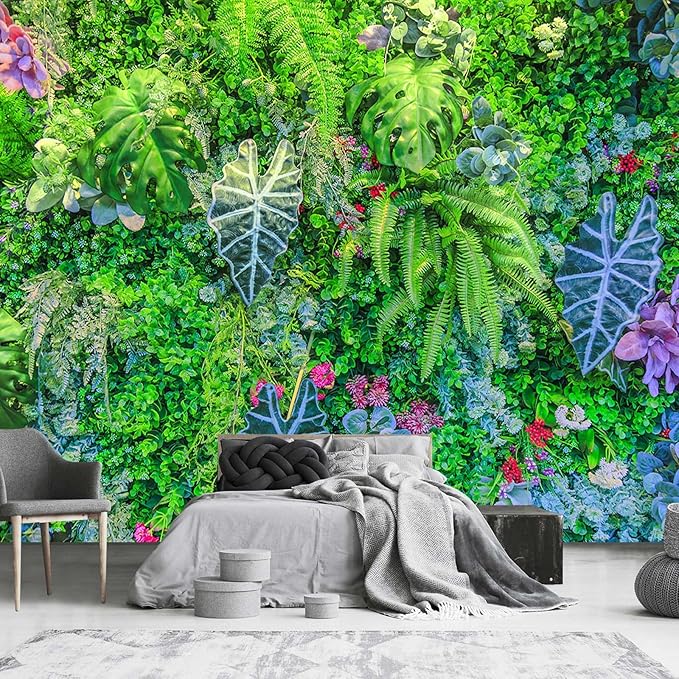 Green Tropical Plant Background Wall for Living Room Decor (Not Peel and Stick)