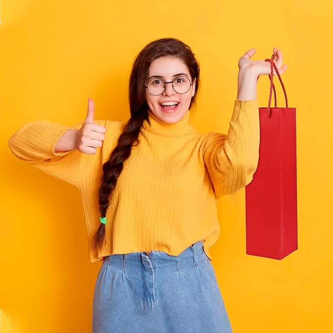- Material:Wine gift bags bulk are made of strong and solid kraft paper, smooth matte finish, well constructed with rope handles, sturdy and durableWell made bottom is with premium glue, tidy and super durable to hold almost all wine bottle (750ml) or some other long and narrow gift