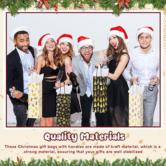 - Christmas Wine Bag Design: Christmas kraft paper flash wine gift bags with Christmas elements design, delicate design red wine bag will shine in the light; The Christmas wine bag contains Christmas patterns in line with the Christmas theme, which can add Christmas atmosphere to your home or party