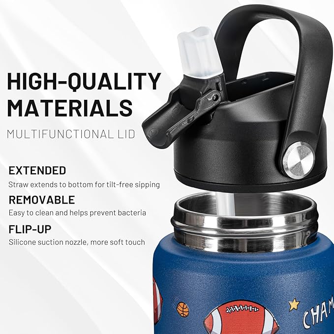 12 oz Insulated Water Bottle With Straw, Sports Water Cup Flask with Wide Mouth, Leak Proof Travel Thermo Mug - Blue Skate Hockey