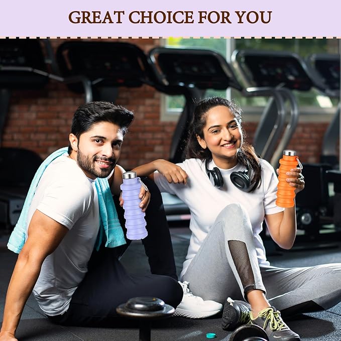 - Colors and Quantity: this package comes with 2 collapsible water bottles in appealing orange and purple colors; The distinct color options make these reusable water bottles suitable for most age groups; This item combines functionality and aesthetics, making it a nice travel or everyday accessory