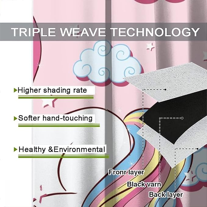 Unicorn Curtain for Kids Bedroom,Pink Cartoon Rainbow Darkening Curtains Decor Sliding Curtains Decorative Curtains for Girls Boys Baby Room,Living Room Decoration 63x72inch