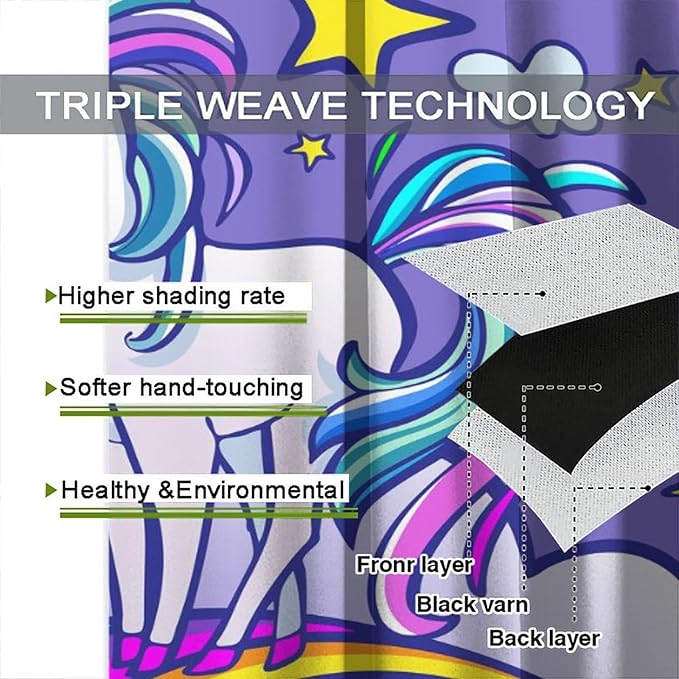 Kids Unicorn Curtains Purple Cartoon Rainbow Cartoon Room Blackout Curtains Boys Girls Baby Room Decor Curtains Living Room Decor 72x63 Inch 2 Panels