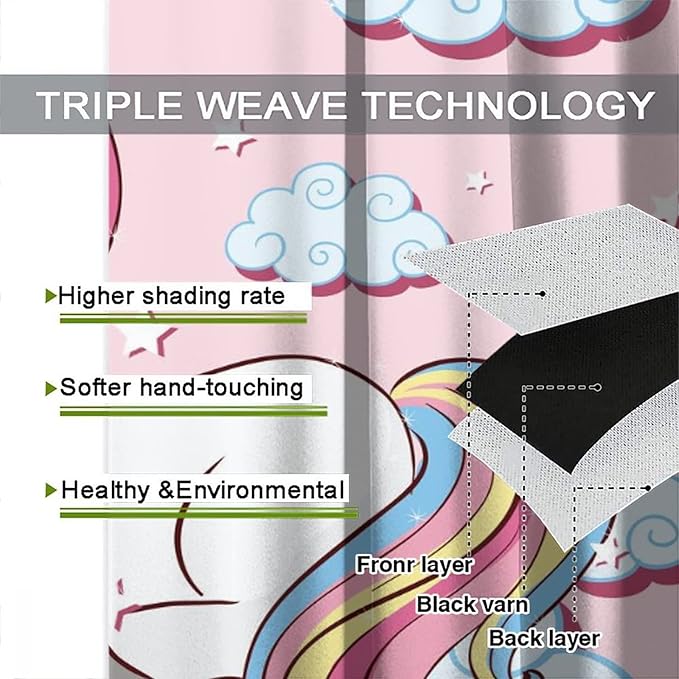 Unicorn Curtain for Kids Bedroom,Pink Cartoon Rainbow Darkening Curtains Decor Sliding Curtains Decorative Curtains for Girls Boys Baby Room,Living Room Decoration 63x63inch
