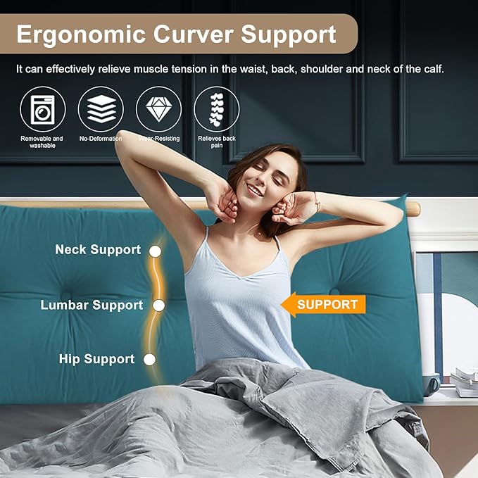 - MULTIFUNCTIONAL APPLICATION: There is one side pocket of the headboard wedge, which can be used to put remote control mobile phones and other items. Our long backrest support bolster cushion not only decorate the bed and act as a headboard, but also fill in the gaps and keep items from falling out. You can use it as a support bolster cushion, which provide back support for your family when reading, playing games, and taking a nap. It's also popular in college dorm beds.