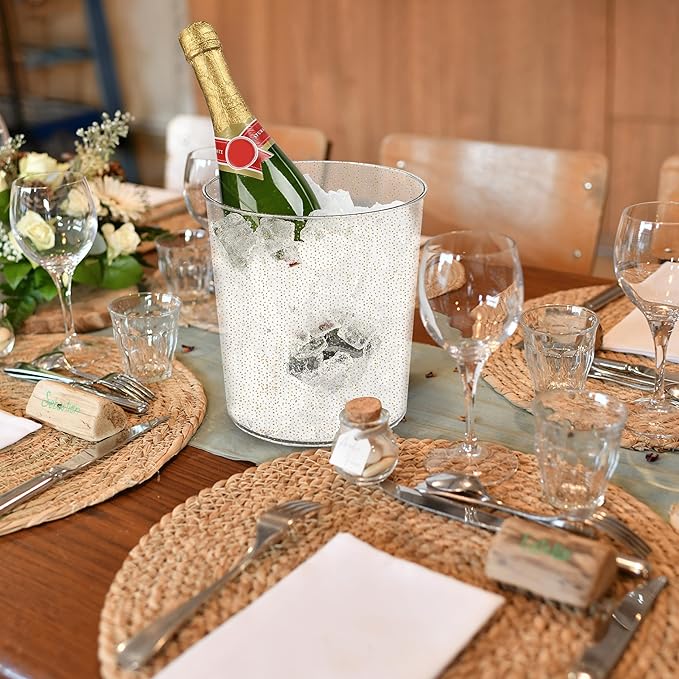 - [Select Your Bottle]: Spec101 Champagne Ice Bucket for Wine Bottles, Beer Cans, and Seltzer Drinks are made from transparent plastic so you can easily monitor ice, popcorn, or salad levels