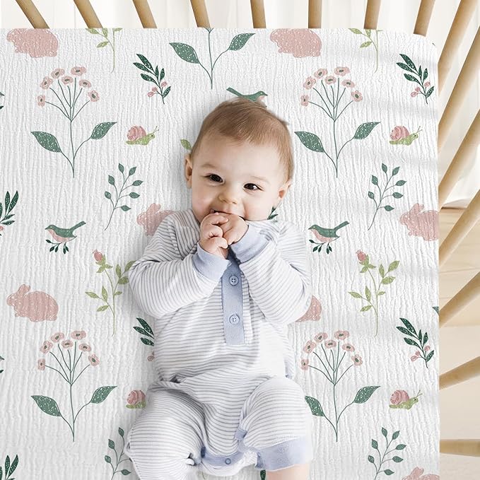 - 100% Muslin Cotton - The baby crib sheets set is made of ultra soft muslin cotton, super comfortable, skin-friendly and cozy to the touch, does not irritate baby's delicate skin. Breathable fabric ensures your baby a restful night's sleep;