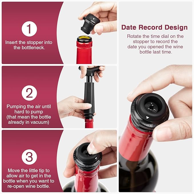 - Easy to use - simply insert the stopper at the mouth of the wine bottle then place the vacuum pump on top of the wine stopper and start pumping about 15 times