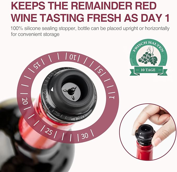 - Efficient Wine Preservation System - keep wine fresh, preserve wine in vacuum condition to keep it fresh for up to 7 days with minimal cost and effort