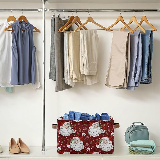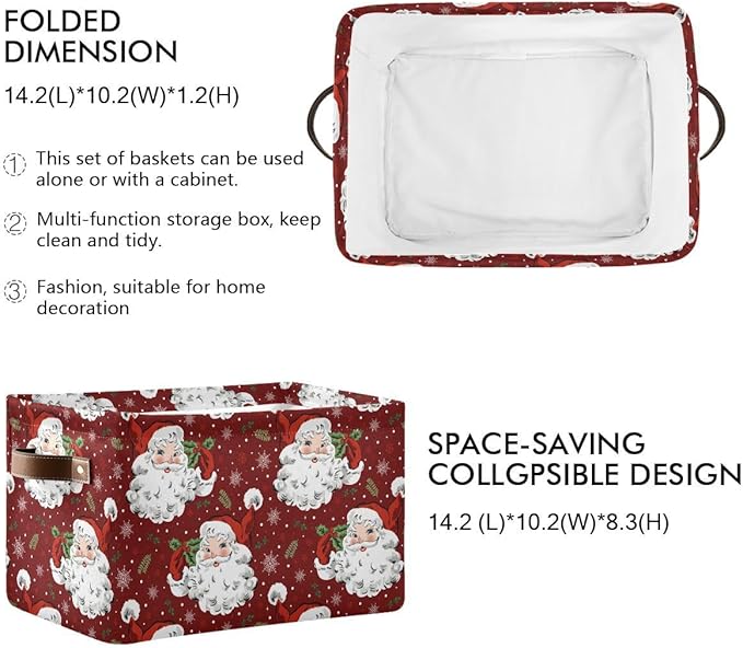 Christmas Santa Claus Red Storage Basket Fabric Kitchen Baskets Winter Snowflake Xmas Decorations Open Home Storage Bins Boxes Foldable Organizer Bag for Toy Book Shelf Closet Baskets 16×12×8 Inches