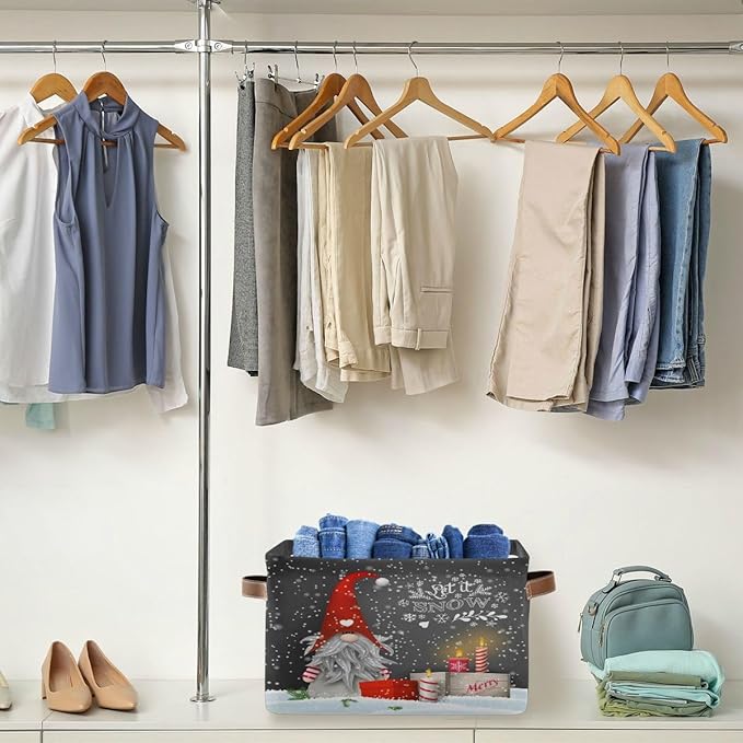 Winter Gnomes Storage Basket Fabric Kitchen Baskets Let it Snow Christmas Decorations Open Home Storage Bins Boxes Foldable Organizer Bag for Toy Book Shelf Closet Baskets 16×12×8 Inches