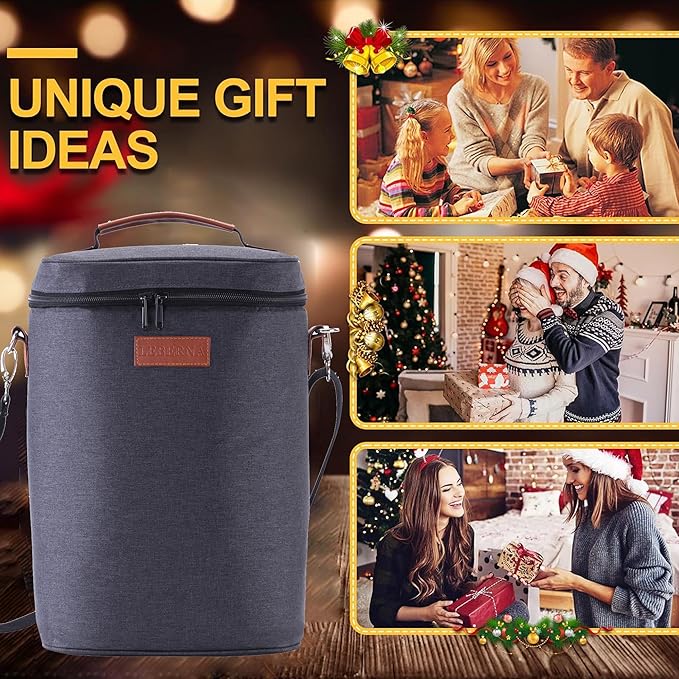 - 【Ideal Gift for Wine Lovers】If you're a wine connoisseur, a devoted wine lover, or simply someone who relishes outdoor activities with a touch of sophistication, our Premium Wine Gift Tote Carrier is the embodiment of your desires. Its classic aesthetics, combined with its practicality, make it the ideal gift choice. Whether it's a birthday, wedding, Christmas, or Thanksgiving, this wine carrier speaks the language of wine lovers, making it the perfect wine gift.