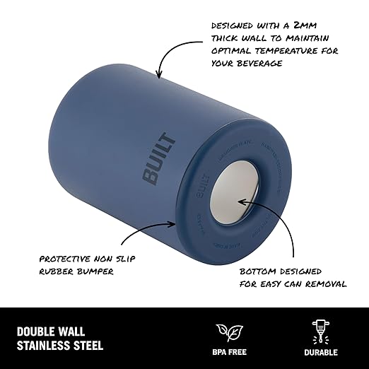 - INSULATED: double-walled, vacuum-sealed chiller slips over cans to keep drinks cold for up to 8 hours