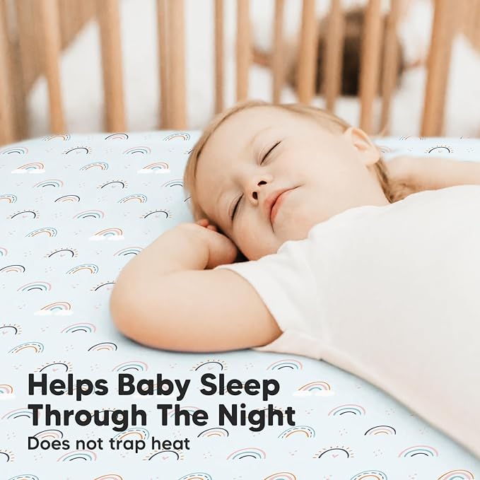 2-Pack Crib Sheets for Boys,Girls - Viscose Derived from Bamboo Fitted Crib Sheet, Organic Baby Crib Sheets, Crib Mattress Sheet,Toddler Bed Sheets,Baby Sheets for Crib Fitted Sheets(Jolly Rainbow)