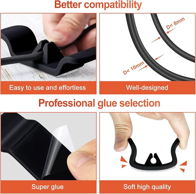 - PREMIUM MATERIAL: Each appliance cord organizer stick on is made of high quality rubber, durable and deformation resistant. The sticky adhesive pad is non-toxic, odorless, and will not leave marks on kitchen appliance surface