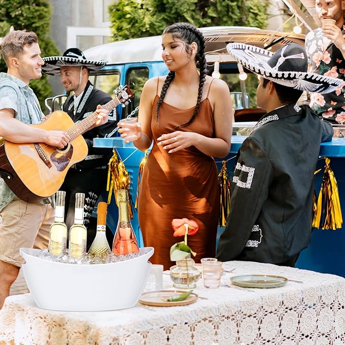 - Easy to Clean: The inner wall of the plastic beverage tub is smooth and very easy to clean. Just wash it manually with soap or warm water, and then wipe it clean. It will be clean again.In addition, the design with handles on both sides of the ice bucket is easy to carry and handle