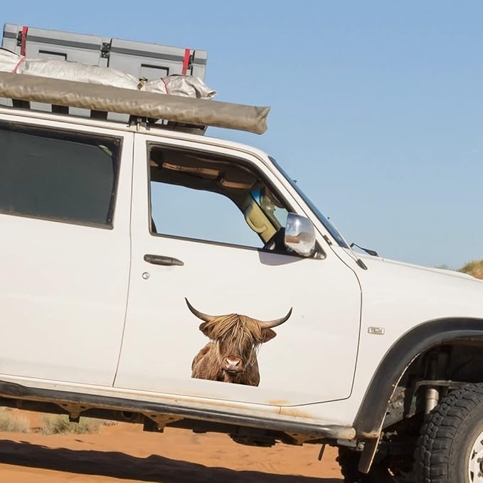 Funny Animal Wall Decal Removable Highland Cow Wall Art Sticker Farmhouse Wall Decor Scottish Rustic Cattle Wall Mural Sticker Funny Christmas Gift Animal Door Window Decals