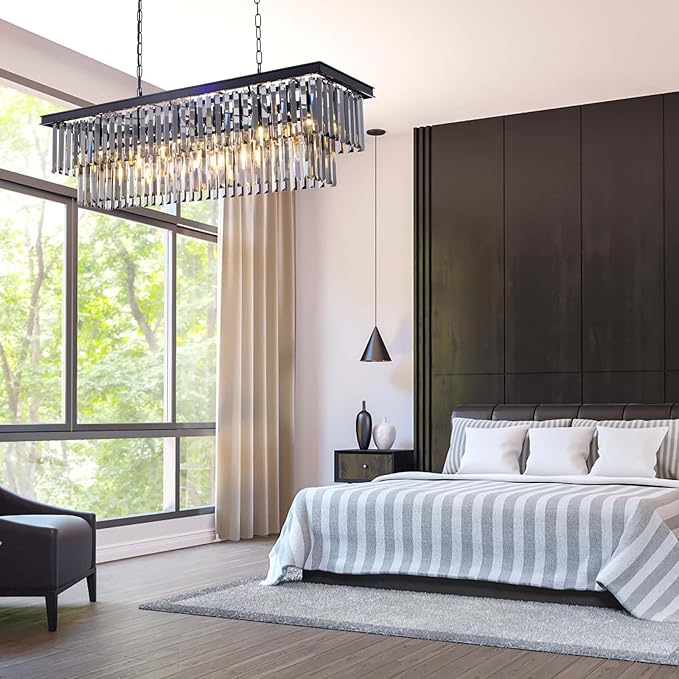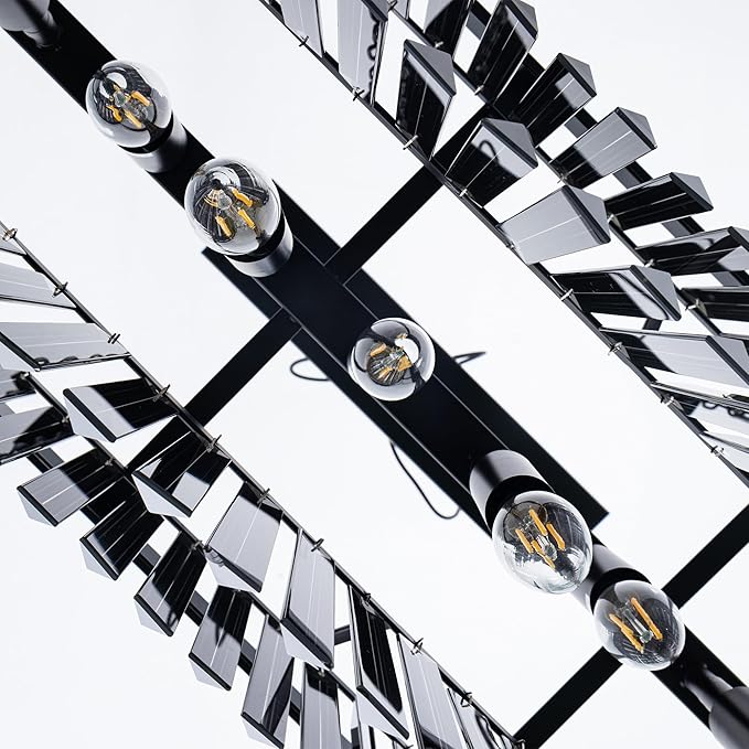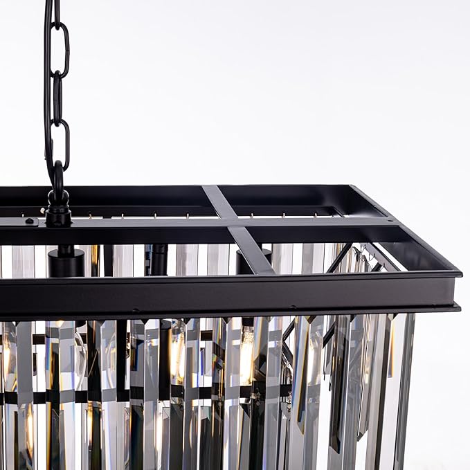 - 11 Lights Rectangle Chandelier: Combines classic and contemporary elements, the clear and simple black lines are equipped with high-quality k9 crystals to inject dazzling brilliance into your space